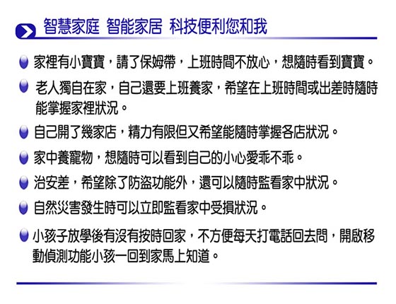。監視、防盜、照護、影音通話多功能合一,跨越空間距離障礙